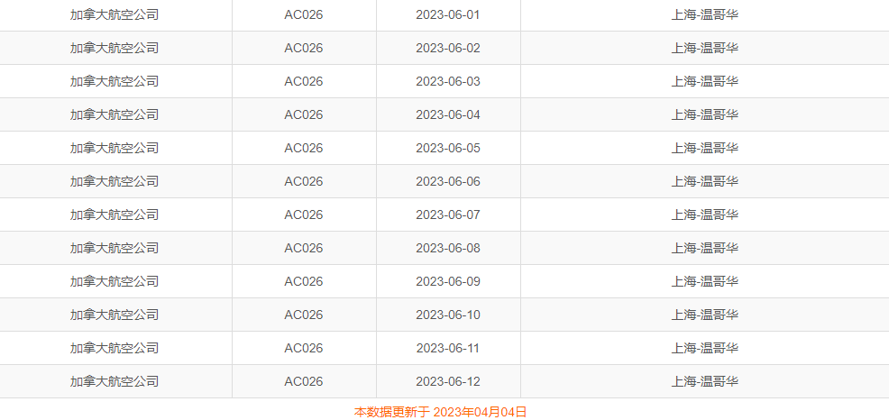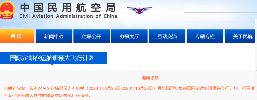 随着赴华签证的恢复和入境要求的放宽,不少华人都在关注前往中国的航班数量是否将恢复到疫情前水平。据中国民航局网站可查询到的计划内容显示,已经批复允许加航在6月至10月份期间,每天都有航班往返中国。值得一提的是,民航局在该查询页面指出,“这次的查询结果是本航季(2023年3月26日至2023年10月28日)民航局已批复的国际客运航班预先飞行计划,但不排除因疫情防控、航空公司经营等原因导致的航班实际未执行等情形。”