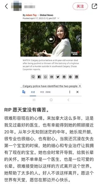 不过,在社交媒体上,有华人网友发文悼念她并表示,“来加拿大这么多年,这是我见过的最好的医生。”