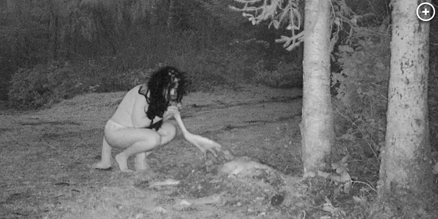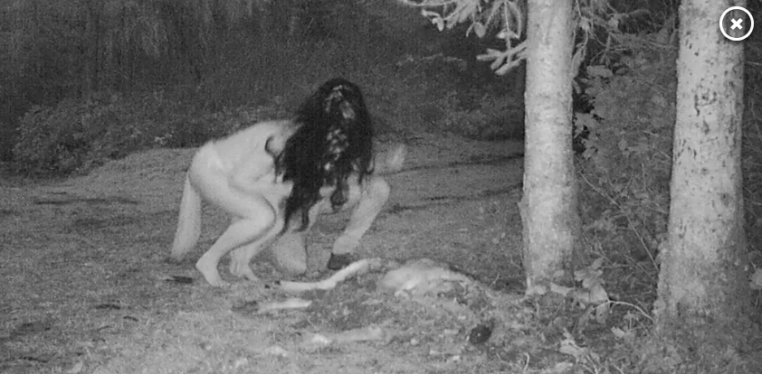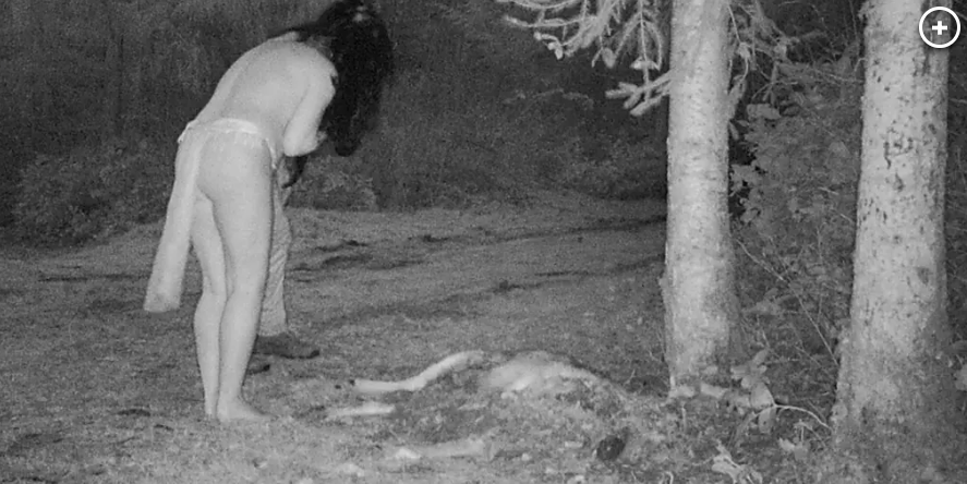日落后,有两个几乎全身赤裸的女性来到了鹿的尸体前,长长的黑发遮住了她们的脸,但能看出,她们蹲下身去似乎正在吃鹿的尸体,就像2014年恐怖片《女巫》中的场景。Corinea描述,这两人几乎全身赤裸,但阴部有腰布覆盖着。她们看起来像是戴的黑色假发,因为其中一人似乎露出了金色的头发。Corinea说:“从照片上看不出来,她们是在吃,是闻还是在亲吻鹿的脚,但鹿的脚确实被拿到了她嘴边,考虑到上面的细菌数量,我觉得这实在是太恶心了。”
