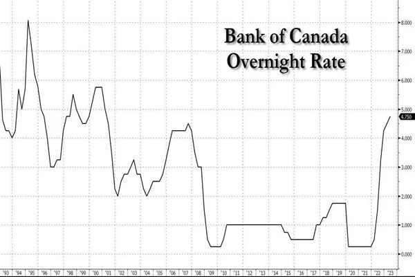 刚刚,加拿大央行行长宣布将基准利率上调25个基点至4.75%。这是自今年1月宣布暂停加息以来的首次上调,也令加拿大央行基准利率达到了22年以来(2001年4月之后)的最高水平。在此之前,已连续四个月未加息,这次市场普遍预期利率将维持不变。就在昨天,多家媒体还报道称,多名专家认为央行目前很有可能会继续观望市场,会在今年夏天末尾宣布加息信号。央行此前亦曾表示,只要数据继续显示经济降温足以将通胀率回落至2%的目标,央行就可能继续暂停加息。然而,今天加拿大央行出其不意地加了25个基点,使基准利率达到4.75%。而今天的加息决定说明经济并未如期降温。这也反映在最近刚公布的第一季度GDP增长幅度和通货膨胀率上,今年加拿大第一季度GDP超出预期,增长了3.1%。而通货膨胀率在10个月内首次升至4.4%。央行在新闻稿中表示,全球范围,消费价格通胀正在回落,主要反映了能源价格较一年前下降,但是潜在通胀仍居高不下。在更高利率下,全球各地的经济增长正在放缓,但各国央行表示,利率可能不得不进一步上升,以恢复价格稳定。另外,加拿大经济在2023年第一季度强于预期,GDP增长3.1%。即使考虑到人口增长带来的提振,消费增长也出人意料地强劲和广泛,服务业需求继续回升。