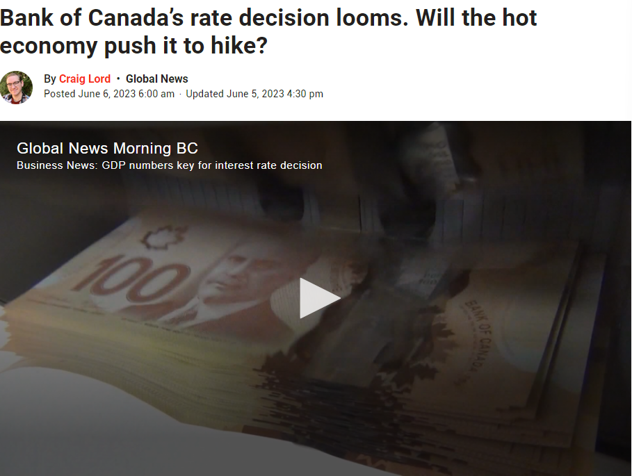 ……对利率敏感商品的支出有所增加,最近房地产市场活动也有所回升。劳动力市场仍然吃紧,更高的移民和参与率正在扩大劳动力供应,但新工人很快就受雇佣,这反映出对劳动力的需求持续强劲。“总体而言,经济中的过剩需求看起来比预期得更持久。”展望未来,加拿大央行管理委员会将主要关注通胀预期,工资增长,企业定价和过度需求,以确保这些因素符合通胀在2024年降至2%的目标。下次基准利率是再上升还是维持不变将于7月12日见分晓。