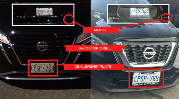仔细看,虽然两辆车的品牌都是尼桑,但Obioma的车牌有经销商提供的车牌框,车窗上标有车型字样“SV”,散热器格栅有更宽的银色边框……套牌车则没有以上特征。但这些细微的差别,猛一看是很难发现的。407号高速公路发言人克里斯蒂娜·巴西尔(Christina Basil)告诉多伦多 CTV 新闻:“这是一起欺诈案,受害者的车牌号被复制了。”“不幸的是,欺诈性复制车牌事件确实会发生。如果我们可以确认他们非法滥用车牌,我们将会为真正的客户撤销罚款。”高速公路发言人建议车主赶紧向警方报告相关情况(车牌丢失或被盗),并依照程序,将被套牌的车牌交给交通部。