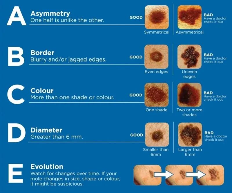 以下是加拿大皮肤癌协会推荐的“ABCDE自我检查法”: