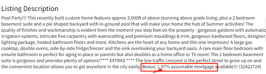 多伦多士嘉堡一处标价$250万的房产上市——300多平方米的居住面积,5个卧室,后院游泳池……光是这几样就已经让不少买家动了心,但还没完……卖家的另一个条件让一些买家彻底失守——转让1.97%的房贷利率。