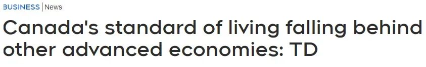 据CTV报道,TD银行发布最新经济报告显示,与其他发达国家相比,加拿大的生活水平正落后于标准。