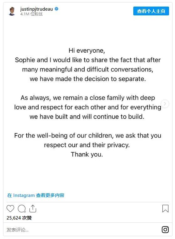 【重磅突发】加拿大总理特鲁多与妻子分手!