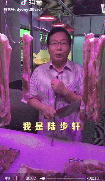 他在抖音上发布的第一个短视频里说,“我曾被政府招去做了12年的公务员,之后辞去公职,重新回到肉案,希望利用有限时间,做好猪肉这篇大文章。”