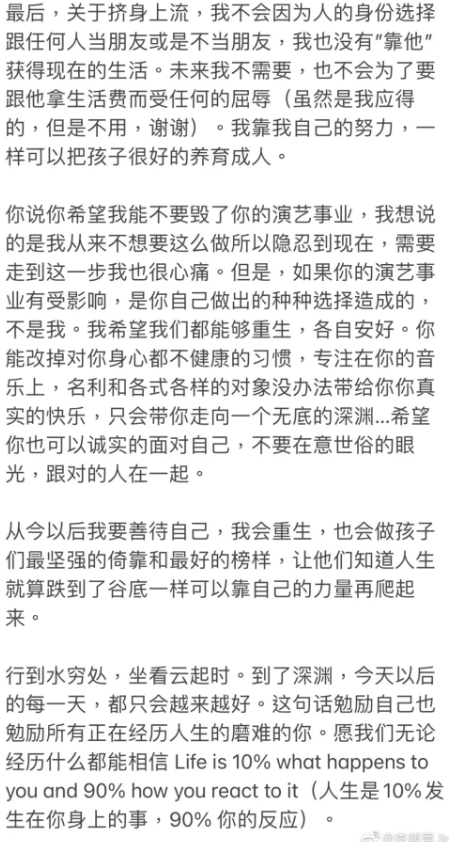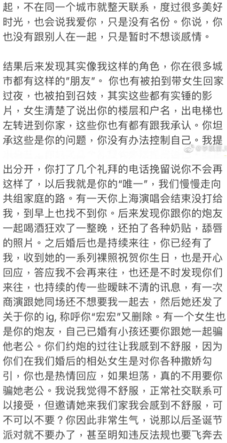 就在李靓蕾发出这篇长文不久,就有媒体曝出王力宏从婚前就已经出轨了By2组合的妹妹Yumi,并称爆料来自Yumi的闺蜜。闺蜜称实在看不下去了:王力宏在和老婆交往期间,就出轨了by2妹妹Yumi,每次王力宏与Yumi见面时,都是YB,不谈感情。直到王力宏和李靓蕾宣布结婚后,Yumi才知道自己做了小三,并称李靓蕾也挺不容易的。