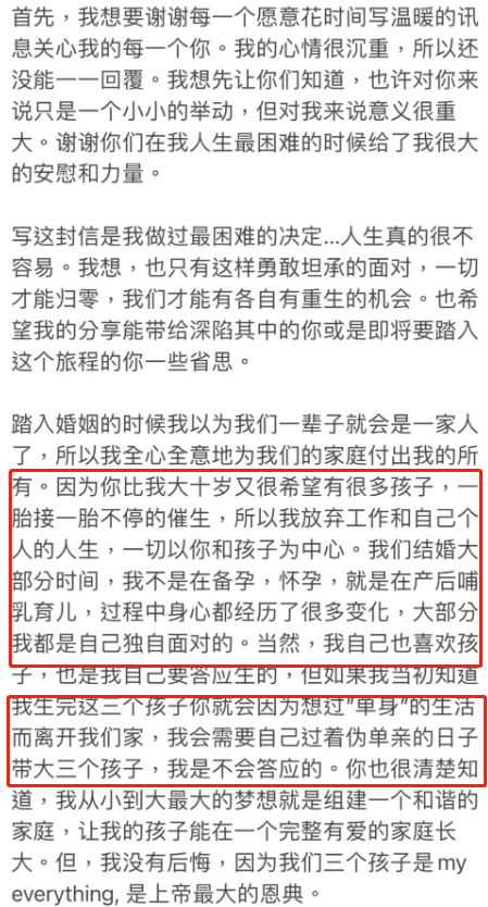 确实,这么多年,所有人都以为是李靓蕾“飞上枝头变凤凰”嫁给了万千女性的梦中情人,却不知她自己正处于深渊和噩梦,真的是太可怜了。其实李靓蕾本身条件非常好,1986年出生,哥伦比亚研究生。如果不是因为生孩子养孩子耽误,现在个人发展一定也不差。然而因为王力宏蹉跎了青春,此时离婚的她已经35岁了,今后再进入职场也会非常困难。从李靓蕾的话里不难得知,王力宏在已经提前转移了财产,势必给抚养费上会非常吝啬,而还要养育三个孩子,会非常艰辛。