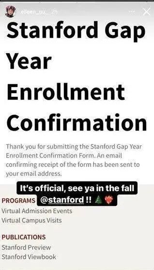 而为了此次北京冬奥会,谷爱凌搁置了自己的学业,原本已经收到斯坦福的入学通知,却只能选择延迟入学,专心致志于备战冬奥会。不过,取得荣誉的谷爱凌没有忘记读书的任务,目前已经正式表态,在冬奥会结束之后,谷爱凌就会回到美国,将于秋季去斯坦福读书,修读学业,坚持汲取更多知识,变得更好。CNN的报道中提到,谷爱凌预计将在今年秋天到斯坦福报到。谷爱凌的IG页面和斯坦福的脸书官方账号上亦反映了同样的信息。