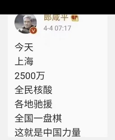 而就在几天前,郎咸平还在微博大赞全员核酸: