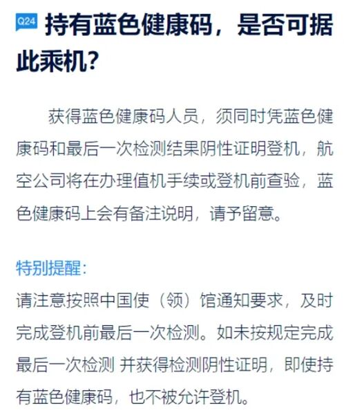 · 在登机前48小时“双核酸检测”或“核酸抗体双检测”中,最后一次核酸检测时限缩短至登机前24小时。