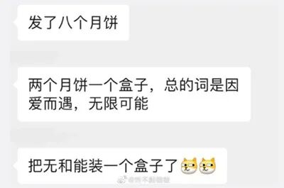 据杭州日报报道,昨日,一则“被公司发的月饼气到了”的爆料冲上微博热搜。该网友发文称:朋友的公司发了四盒月饼,每盒两个。打开一盒,里面俩月饼上一个刻着“无”,一个刻着“能”……他顿时无语,公司领导和同事们登时浮现在他的眼前,想到自己在公司的地位,他欲哭无泪,如鲠在喉,不寒而栗……稍后,他强打起精神,颤抖着把其他三盒也全部打开……好在,八个月饼上的题字各有不同——拼在一起,是“因爱而遇,无限可能”。不知是故意还是无心,厂家把“无”和“能”放在一个盒子里了。“因爱而遇,无限可能”,这确实是句好话。然而,这依然遭到了一群“无情”网友的调侃——有网友不嫌事大,悠悠地说:“……万一不是那样拼的呢?万一它是‘无爱无能,因遇而限’呢……”“又万一是‘无遇无能,因爱而限’呢……又万一是‘无因无能,遇爱而限’呢……按厂家的解释算是上上签,可要我解释,这可都是下下签……”一众网友高呼:这绝对是今年中秋单位发月饼段子里最‘惨’的梗。周六中秋,魁北客传媒提前祝大家“花好月圆,幸福美满”。