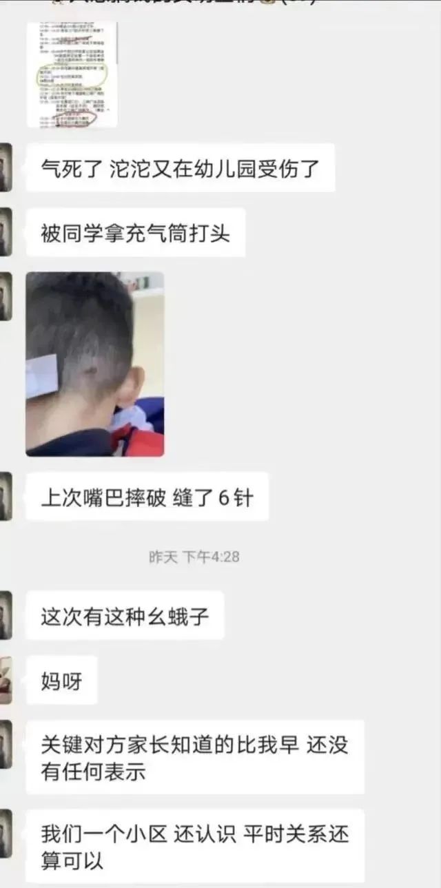 幼儿园老师将两人拉开。“拉开之后,我儿子说有点气不过,于是又去打了小鲁……把小鲁的头给打破了。”