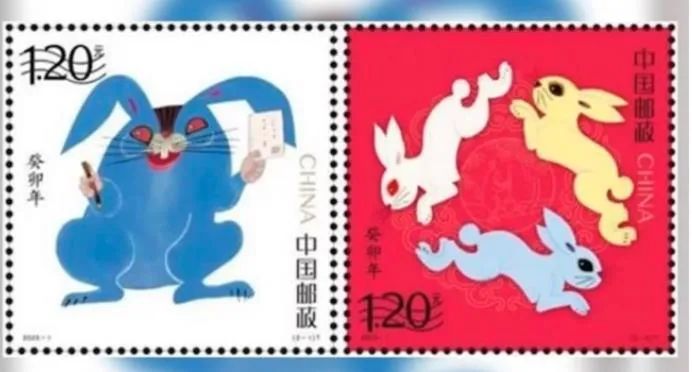 据中国邮政介绍,兔年生肖邮票一套两枚,第一枚名为“癸卯寄福”,第二枚名为“同圆共生”。