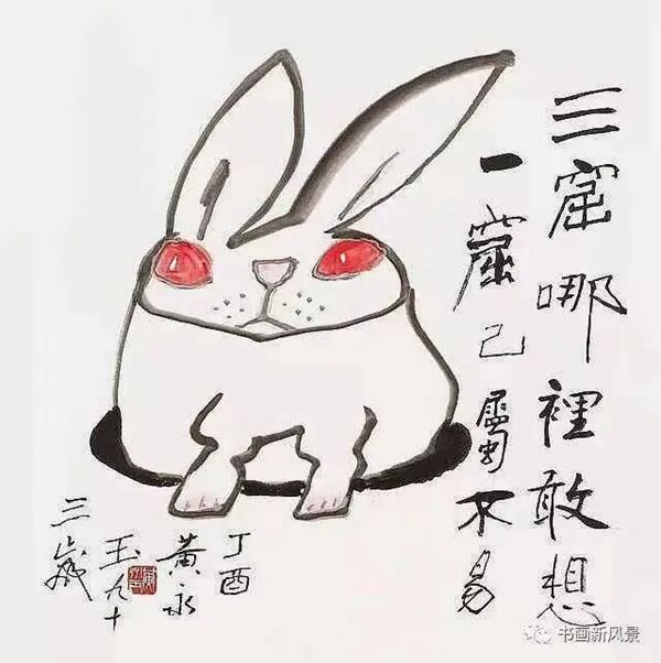 与普通网友不同,集邮爱好者们似乎并不在意这个兔子看起来诡不诡异,妖不妖媚,反而认为,这张邮票一定会很有升值潜力。1980年是猴年,中国首次发行生肖邮票,而这第一枚猴票正是由黄永玉执笔。发行初市值8分钱,现已升值到至少1.2万元一枚,整版价值更是超过百万。其实,了解黄永玉的人都知道,这张蓝色兔子传承了他一贯的艺术风格。黄永玉的画风向来都是落拓不羁的。而从他过往所绘的其他兔子看来,蓝兔子的画风并未跑偏太多……小编觉得,这蓝兔的眼睛画得最好——你盯着看,越看这兔子越有神!关键是你盯得越久你自己的表情就越涣散,像是喝了酒,越看越想咧嘴笑……得赞大师功力了得。不过,这“人手”……迪士尼人形动物不都只画4根手指吗……这蓝兔的手画得也太拟人了吧。截至发稿,网友的讨论相对集中在这一点上:黄永玉的蓝兔子,该不该出现在中国正儿八经的贺岁邮票上?