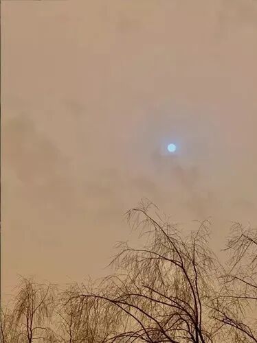 中国北方地区近日遭受大规模沙尘暴来袭,首都北京发布预警,全市空气处于严重污染水平,悬浮微粒浓度一度爆表。漫天黄沙影响光线折射,北京昏暗的天色里出现了蓝色的太阳,让民众直呼奇景。