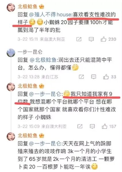 “家里有9位数存款…都是国内韭菜供的”,官员爷爷的孙女火爆网络 2023-03-24 点击: 作者:魁北客 海报图 近日,一位网名叫作“北极鲶鱼”的女子在网上晒出其长辈多年前与领导的合照,炫富“家里有9位数”……并直言“感觉家人贪了”……一系列“坦白交代”立刻引发舆论强烈关注。网友热议:此人是否在炫富?若其家涉嫌贪腐,那就应该赶紧查。据悉,“北极鲶鱼”现已定居澳洲。不久前,该网友在某帖评论区中高调炫富,称“自己已经润了,家里存款九位数,都是国内韭菜供的……”此狂妄言论,立即引发围观。该网友还宣称,“家里没有厅级干部的不配骂我……”随着事情不断发酵,有网友扒出了“北极鲶鱼”的真实身份,并指其爷爷是一名“国家级干部”。“北极鲶鱼”则强硬怒怼爆料网购,称此举“已经对其家庭造成影响……自己与家人因此而遭到了网暴”。网友评论: 3月24日,“北极鲶鱼”的爷爷钟先生在回应中国新闻周刊问询时表示,家中有9位数的说法不实。钟先生说,自己2007年退休,曾任深圳区级交通局局长……“老老实实干到退休”。钟先生表示,网上部分言论为网友造谣,孙女因争议言论哭得一塌糊涂。“我也给领导写了材料,表示一定要调查清楚……我怕影响我们单位的声誉,影响我孙女读书。”目前,相关单位已介入调查。对此,你怎么看:这孩子撒谎了吗?· 魁 北 客 摄 影 工 作 室 · 赞 () 分享到: 上一篇 北方变北宋,北京变火星! 下一篇 各航司公布夏秋航班计划,中加航线…零增加! 写评论 昵称: 匿名 验证码: 内容: 热 点 信 息