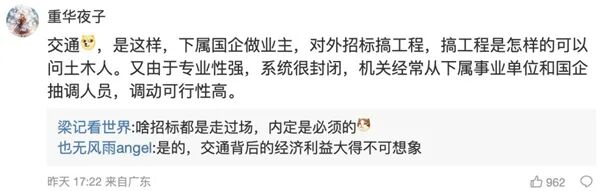 另有网友表示,“交通背后的经济利益大得不可想象。”