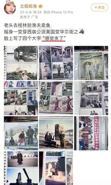 一个月前,“北极鲶鱼”在一组她爷爷的照片集合贴中直言,“老头(她爷爷)脸上写了四个大字‘感觉贪了’”……