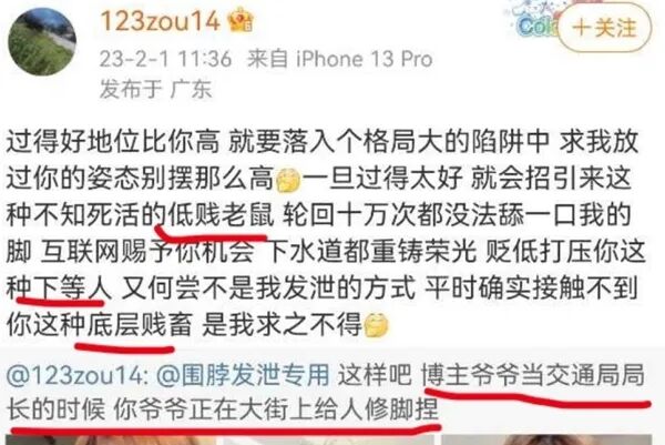 总而言之吧,网友们从近日其“家有9位数、爷爷曾经是官员”的说法开始,倒着扒出了其各式各样的奇葩言论,涉及“辱骂国家,辱骂政府,辱骂中国人民”……“影响恶劣,家风败坏”……