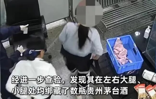 据中国海关微信公众号发布消息称,近日广东珠海拱北海关查获一起旅客夹带大批茅台酒入境案件,一名秦姓女子竟然将14瓶贵州茅台酒绑在大腿上,外部套著黑色长裙意图蒙混过关,被关员查获。消息传出引来网友各种点评,赞其艺高人胆大、堪称“飞茅腿”。