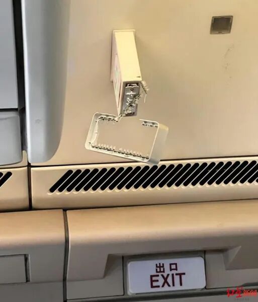 “第二次颠簸发生时,一名乘客蹲在地上,一位空姐用手抱住乘客,而后两人均被甩向上方,撞上机舱顶,撞碎了安全指示灯。”