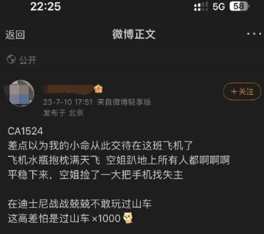 红星新闻7月11日消息,7月10日,多位网友在社交平台称,上海飞往北京的CA1524航班在空中遭遇“严重颠簸”。