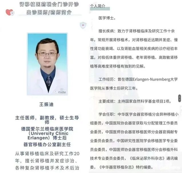 据悉,王振迪是武汉协和医院泌尿外科主任医师、副教授、硕士生导师、德国爱尔兰根临床医学院(University Clinic Erlangen)博士后,器官移植办公室副主任。