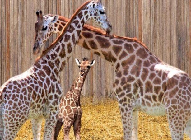 长颈鹿宝宝尽管年纪小,但在“她妈妈”、“她姑姑”,和动物园工作人员的细心照料下,现已高约1米9,重180斤了!非常健康!