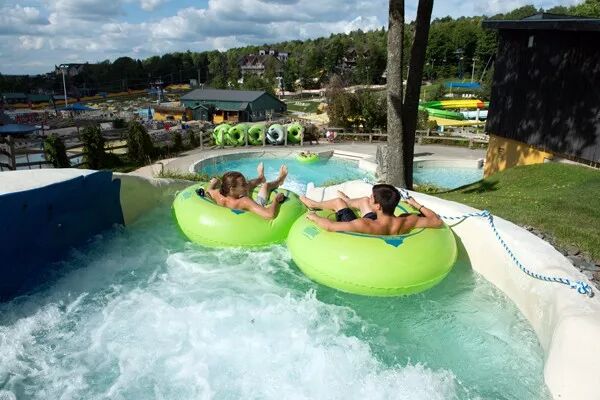 群山环抱的BROMONT水上乐园不仅拥有四个加热恒温泳池,还有依靠山势建起的13个不同难易程度的水上大滑梯!