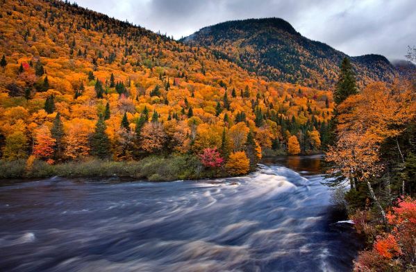 尽管这个公园的头衔比不上与之一河之隔、更加著名的Jacques-Cartier国家公园,但这里的秋色,绝对不会让你有任何失落。河流随着山势忽上忽下,时缓时急……树枝上已红透了的枫叶会随时飘下来,落在你的头上,或停留在你的肩膀。