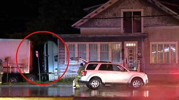 今日凌晨,一辆半挂式大卡车在距蒙特利尔半个小时车程的Richelieu市失控,撞进路旁一民房。凌晨2时左右,大卡车司机停车买咖啡,当他正在Cup of Joe咖啡店喝咖啡休息的时候,突然看到自己停好的卡车正在向前方移动。之后,卡车独自沿Richelieu Blvd行驶了一段距离,撞断了几盏路灯,最后在撞进2nd St路边一栋民房之后停了下来。万幸的是,被撞房间无人居住。全程无人受伤。卡车司机受到巨大惊吓。据悉,卡车自行移动可能是因为手刹出现了故障,也可能是司机处置手刹时出现错误所致。