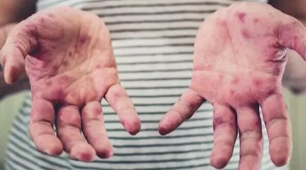 以上症状出现后的2至4天,会首先于面部出现包括丘疹和红斑在内的皮疹,然后会出现在躯干,手臂和腿上,并持续3到7天。