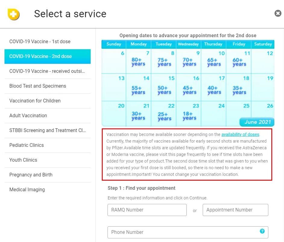 “目前,只有第一针打了辉瑞的人才能调整(提前)第二针的预约时间。”——昨天,魁省疫苗预约网站(Clic Santé:https://portal3.clicsante.ca)上的这个表述引发民众误会。今日,该网站改变了相关说法:· 疫苗接种行动可能会更快,但这取决于剂量的供应情况。· 目前,大多数用于“第二针提前预约”的疫苗都是由辉瑞公司生产的。如果您第一针打的是阿斯利康或者Moderna,请经常访问此页面,查看是否有为您所需产品添加的时间间隔更新。· 第一次注射时给您的第二次注射时间依然有效,您无需为此重新预约——在没有提前预约需要(即变更预约时间)的情况下,您的第二针注射时间将不会改变,该预约也不会被取消。· 重要提醒:第二针的接种地点必须与第一针保持一致(即时间可以改,接种点不能改)。5月底之前,加拿大联邦政府,包括魁省政府的确均曾提出过疫苗混打的具体方案,但5月底时,加拿大免疫顾问委员会(NACI)更新了《第二针疫苗指南》,并提出,有关实验数据仍不充分,混打一事需要等等再说。该最新疫苗指南建议居民“在接种第二针时,应首选与首剂同款的疫苗,其次才选同属性疫苗。”此后,该建议被各省级卫生部门采纳。换言之,现在是“能不混打就先不混打”。