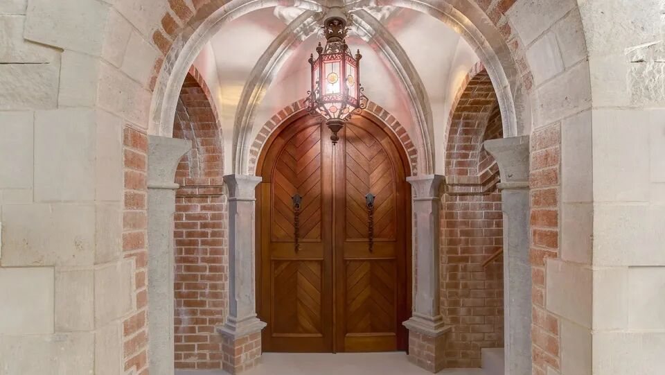 “这座占地 173 英亩的欧式庄园共有六栋建筑,包括一座小教堂、一座宾馆和一座城堡,总共包括 10 间卧室和 14 间浴室”。