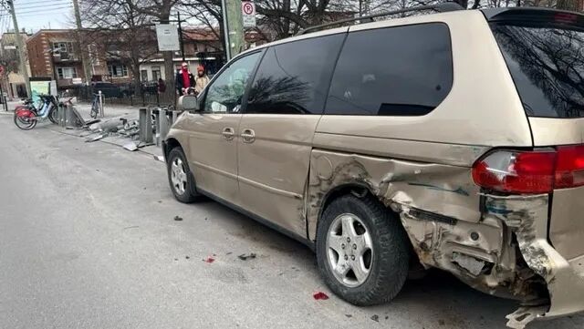 与Bixi单车站相邻停靠的一辆VAN也无辜受难。