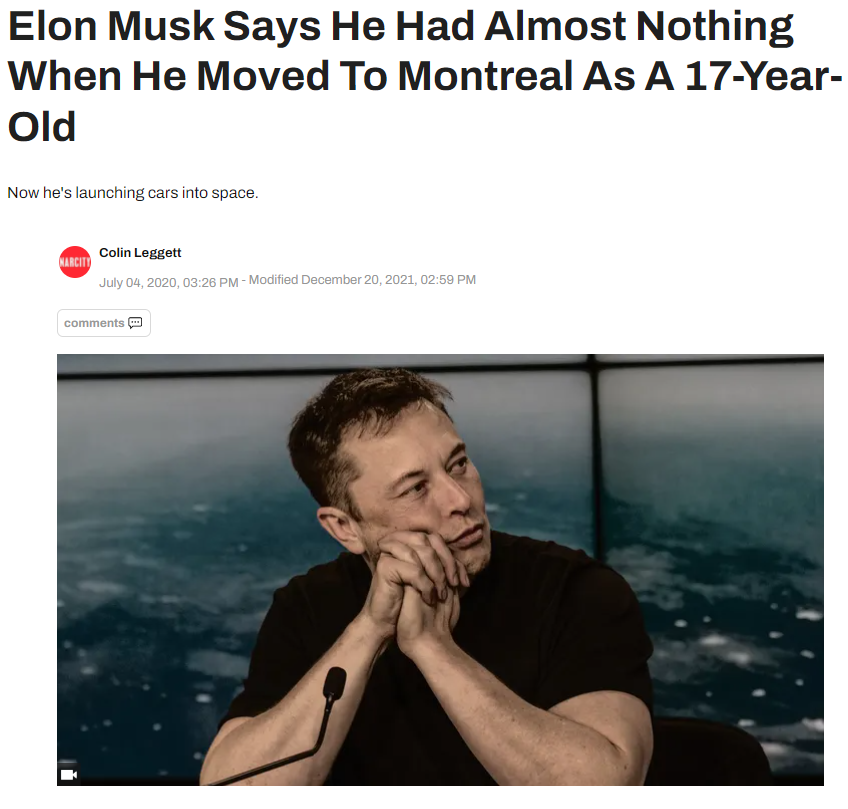 怎么?这位世界级大富豪竟是蒙特利尔人?没错,马斯克曾在去年发生的一场骂战中亲口证实了这一点。