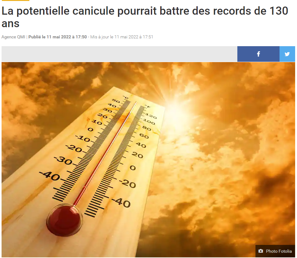 根据气象学家 Gilles Brien 的说法,蒙特利尔每三年才会在 5 月份有一天时间达到 30°C。在他看来,早在五月就开始炎热的天气是全球变暖的影响。