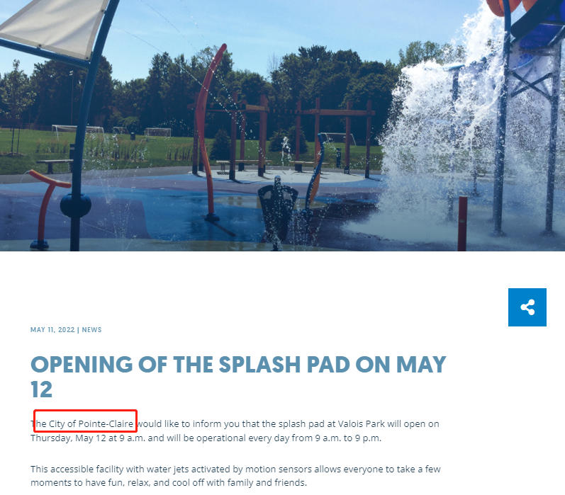 昨天,市长瓦莱丽·普兰特在推特上宣布:由于高温天气,大蒙特利尔地区大部分城市都已经提前开放戏水公园,以帮助当地人降温,