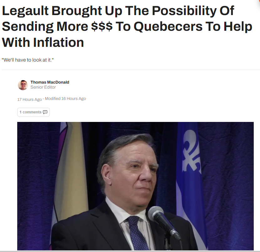 “我们正在密切关注这一点,我们看到了所有价格都在上涨,如果魁北克人需要额外的帮助,我们将对该需求进行分析。无论如何,我们认为向魁北克人提供现金一定是最好的方式。”