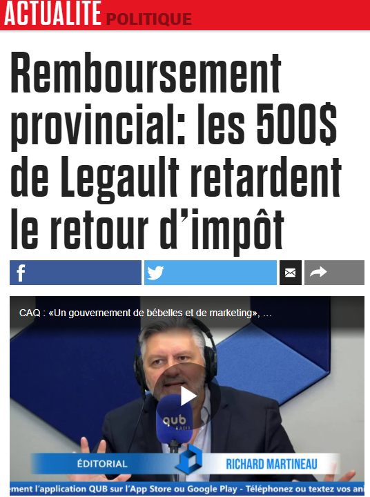 然而这次$500的补贴已给一些居民造成问题,据蒙特利尔日报报道:不少魁省居民已经收到联邦退税,然而却迟迟没收到魁省税局的消息,这是由于这$500的补贴造成魁省税局处理纳税申报表的延迟。