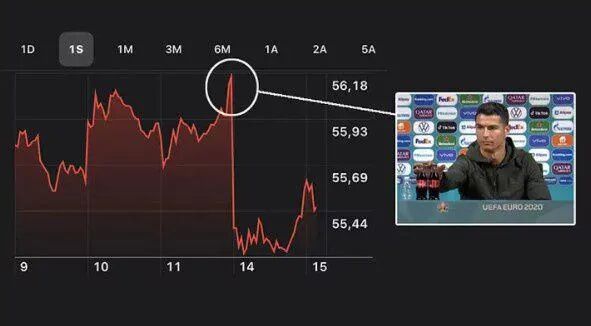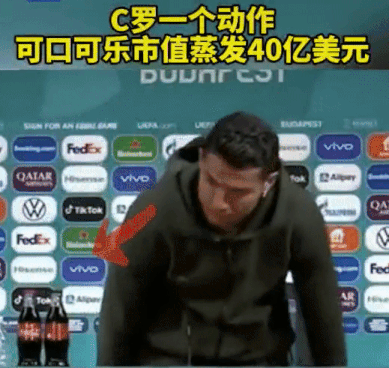 从视频上可以看到,C罗挪开了桌上的两瓶可口可乐,举起了一瓶水。C罗在世界范围内有着巨大的影响力,在C罗做出这一举动之后,可口可乐的市值应声下跌了40亿美元。这两者之间,显然存在着联系。