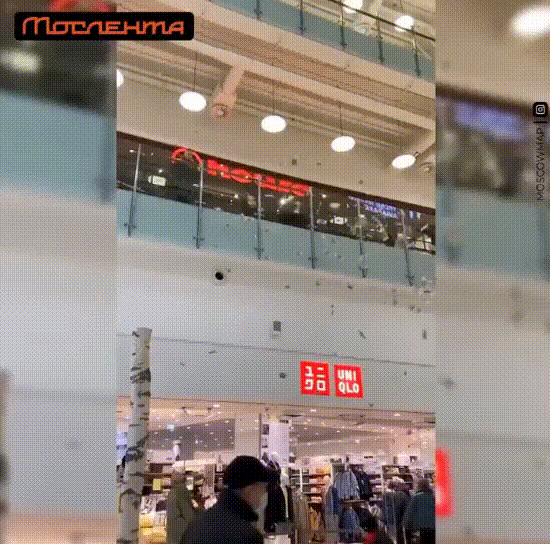 在俄罗斯网媒“Moslenta”昨日分享的影片中,可以看到该男子站在商场二层、Uniqlo(优衣库)门店楼上,从兜里抓出大把纸钞洒向民众。
