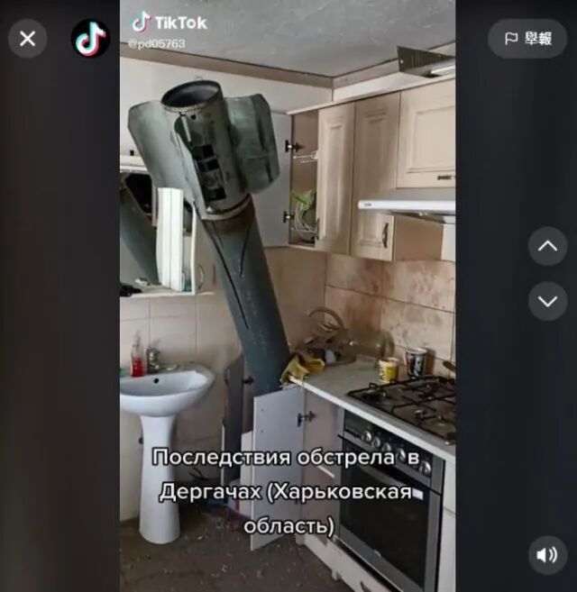 一名当地网友近日在Tiktok上公开了“自家遭遇到的惊险一幕”——一颗巨大的飞弹从天而降,扎穿他家天花板,直捅他家厨房橱柜,幸而未爆……拆弹人员上门进行拆除作业。