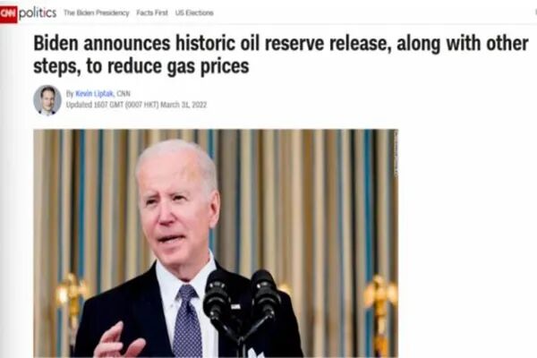 美国总统拜登31日在白宫宣布两项措施:未来半年内每天释出100万桶战略储油;要求石油公司增产,否则就罚款。白宫官员表示,“美国半年内释出总量将达1.8亿桶,以衔接疫情后美国和全球石油产量的回升。待油价回稳再补充储油,有助于油气产量。”“在与盟国和合作伙伴协商后,总统宣布历史上最大的石油储量释放。”白宫在一份发言稿中写道:“这次释放的规模前所未有,世界从未在如此长的时间内以每天100万桶的速度释放石油储备。”俄乌开战后,美国和西方国家相继宣布全面禁止或减少进口俄国油气,造成全球能源价格大涨。美国汽车协会(AAA)公布今日汽油均价为每加仑4.2美元,但今年初的汽油价格只要3.3美元。拜登表示,若要降低汽油价格,就要提高供应量……“那些近年来利润丰厚的石油公司可以增加产量,启动被限制的油井以降低油价,让美国人民喘口气。”