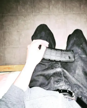不知是何原因,到达小学后他一头撞在学校附近。随后拿出手枪、步枪、弹夹,穿上防弹衣,手持武器直接闯进校园。