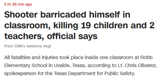 昨天(24日),美国德克萨斯州乌瓦德镇(Uvalde)的罗布(Robb)小学突发枪击案,截止本文发稿已经有19名小学生和2名教师丧生。