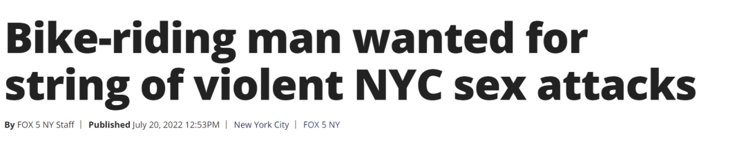 此外,就在上周三,7月20日,类似罪行再度重演。一男子在曼哈顿将一名女性拖出街道并试图强奸她。据报,受害者是一名33岁的女性,嫌疑人也是骑着一辆电动车从后面接近她,然后突然抓住她并把她拖到街上一个隐蔽的地方。警方称,嫌犯随后强行触摸受害者的私密部位,并试图强奸她(未遂)。随后,他骑着电动车向不明方向逃逸。