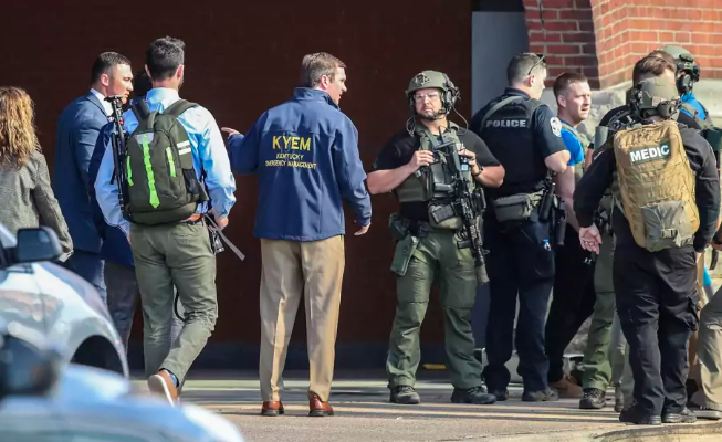 据CNN报道,今天早上美国肯塔基州路易斯维尔市发生枪击事件,造成五人死亡八人受伤。伤者中有两名警察,他们在与枪手交火中中枪,其中一名警察伤势严重。